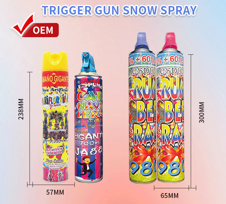 Lo spray per neve artificiale è una grande scelta per la decorazione delle feste e per la celebrazione dei festival.È disponibile in varie dimensioni, ad esempio 150 ml., 250ml, 300ml, 500ml e così via, e la durata di conservazione è fino a 3 anni.è facile da usare e molto conveniente per la decorazione della festa e la celebrazione del festival.